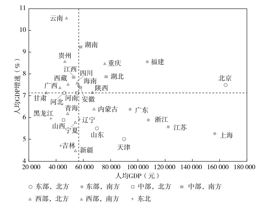 图2-1 中国各省份2019年人均GDP水平及增长率