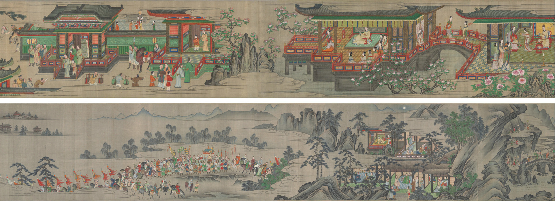 《长恨歌图》画卷(局部),日本狩野山雪绘。该画卷长达20多米,始于“杨家有女初长成”,终于“此恨绵绵无绝期”,描绘了春寒赐浴华清池、宛转蛾眉马前死、碧落黄泉寻芳魂等场景,完整表现了《长恨歌》的种种细节