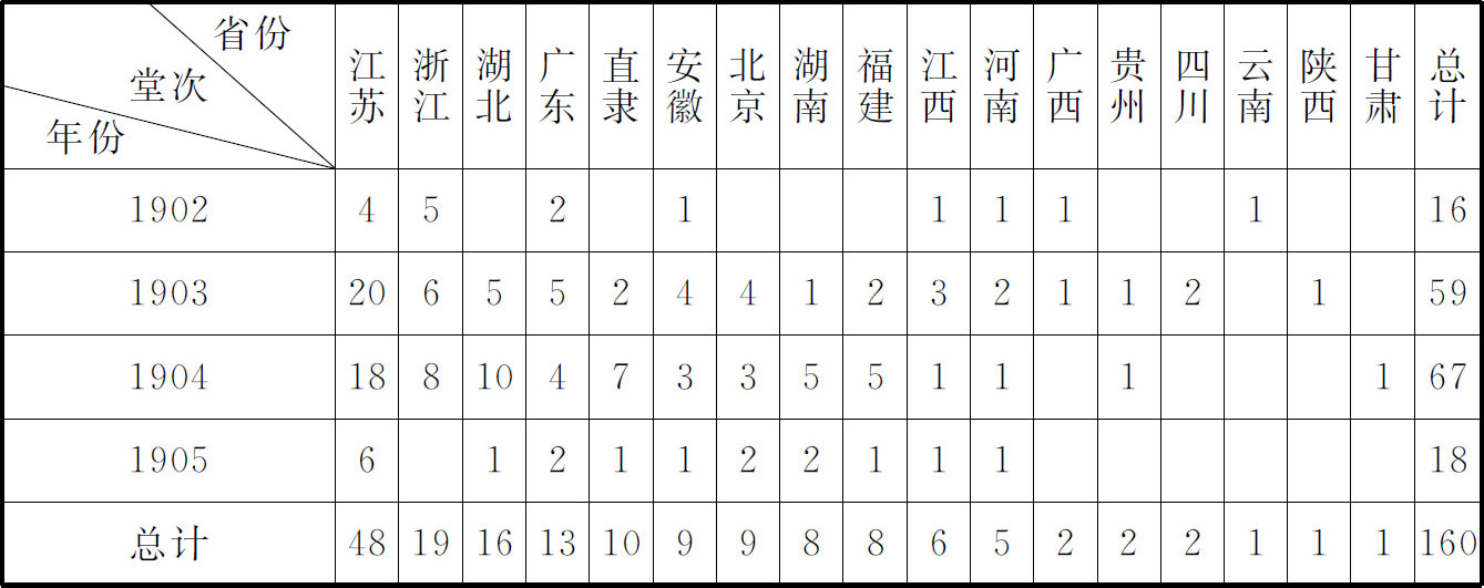 这一阶段的学潮共有85堂次,显示出学生与专制制度的矛盾仍处于持续不断的激化过程中。不过,除少数地区外,学潮缺少高峰期那种一呼百应的声势,影响也大为减弱。虽然1904年学潮在总量上仍有增长,但增幅较上年度减小,而且到1905年更出现下降趋势(参见表2-3):