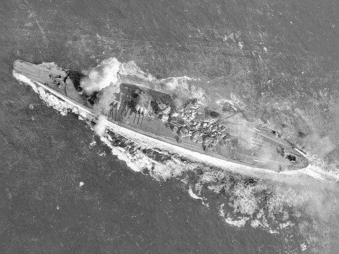 第三轮空袭接踵而来。“能代”号就此被送入海底,尽管“大和”号施展浑身解数,以最大航速行进,但仍被三颗炸弹连续命中,涌入的海水达到三千吨。