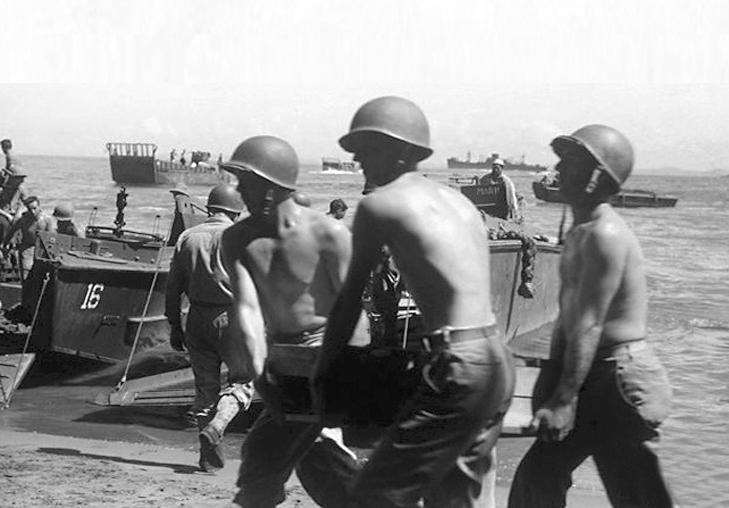 船队下达“灯火管制”命令。陆战队员们集中在舱内,有的打牌,有的看书,有的写家信。最热闹的是饭厅,尽管空气闷热潮湿,动一动就汗流浃背,但天性活泼的美国人还是耐不住寂寞,他们和着留声机的音乐,狂舞乱跳。有一名上校与兵同乐,清清嗓子即兴唱起了歌曲:“我要娶一个像嫁给我老爹那样的闺女……”