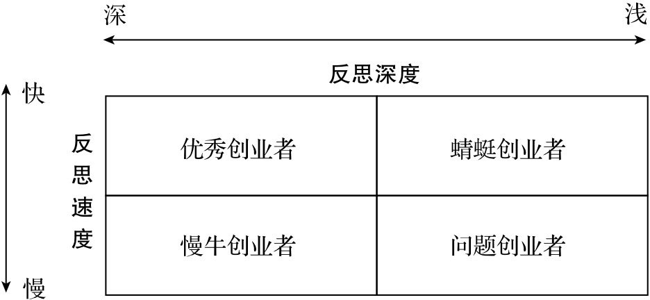 从反思的速度和深度这两个维度,可以把创业者分成四类(见图2-1)。