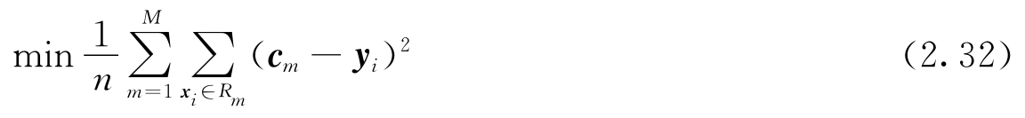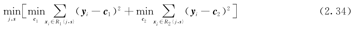 1)选择最优切分变量j与切分点s,求解式(2.34)。遍历变量j,对固定的切分变量j扫描切分点s,选择使式(2.34)达到最小值的对(j,s)。