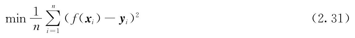 给定一个数据集D={(x 1 ,y 1 ),(x 2 ,y 2 ),…,(x i ,y i ),…,(x n ,y n )},其中x i 是一个m维的向量,即x i 含有k个特征,记为变量X,是自变量,每个特征记为x j (j=1,2,…,k),y是因变量。回归问题的目标就是构造一个函数f(X)以拟合数据集D中的样本,使得该函数的预测值与样本因变量实际值的均方误差最小,即