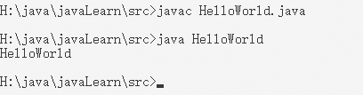 如果要运行该文件,则需要首先将HelloWorld.java采用如下所示的命令进行编译,生成可以被JVM解释的中间文件HelloWorld.class。