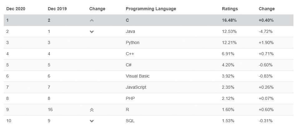 图1-3 TIOBE编程语言排行榜