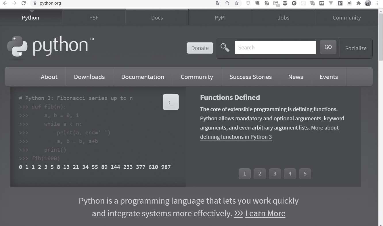 图1-5 Python官网主页