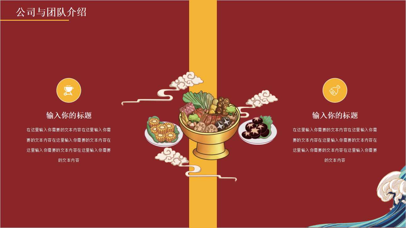 当然,在设计时还可以通过插入形状强行将版面设计成中轴型,如下图所示,此时配色是关键,处理难度相对较大。