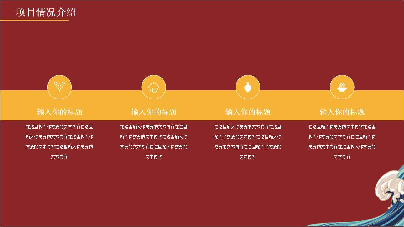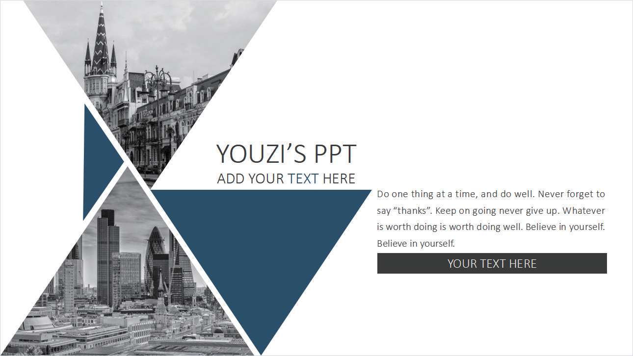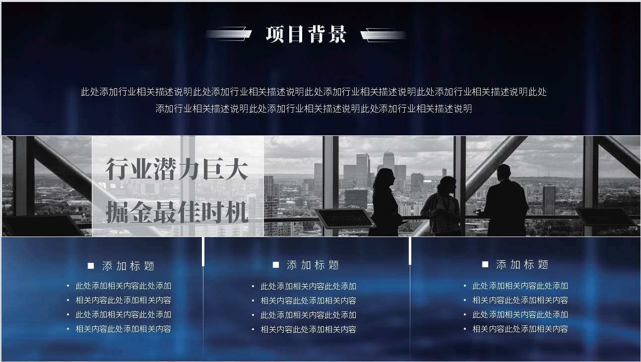 全图形的效果更多的是用于PPT的封面,也可以和内容页一样,直接在图片上添加文字,或添加色块来突出显示文字,如下图所示。