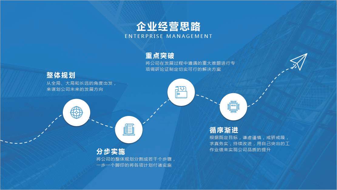 下图所示为企业经营思路,整个进程呈曲线分布,也能清晰地显示各个环节的先后关系,但曲线还隐含了整个过程可能还有很多细节需要展开或存在很多问题需要解决。