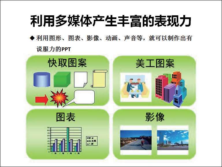 在PPT的视觉构成中,点、线、面既是基本的视觉元素,又是重要的表现手段。在确定PPT主体形象的位置和动态时,点、线、面是需要最先考虑的因素。
