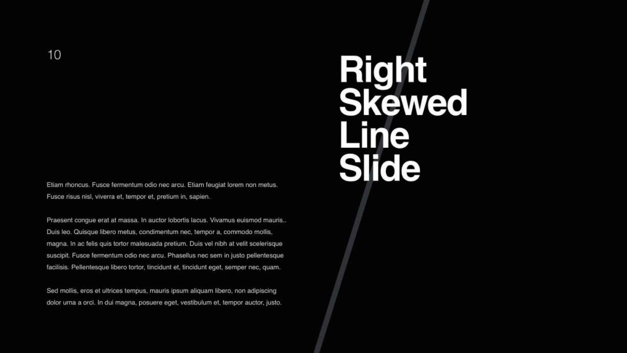 斜置型的幻灯片布局样式是指在构图时,将全部构成要素向右边或左边适当倾斜,使视线上下流动,画面产生动感。