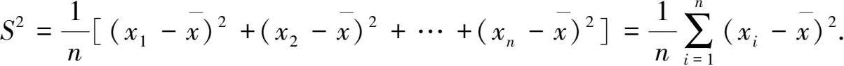 的离差,故一组样本数据的方差是这组数据的所有离差平方的算术平均值,它是反映这组数据分布偏离其平均数的平均指标。其方差表达式为:
