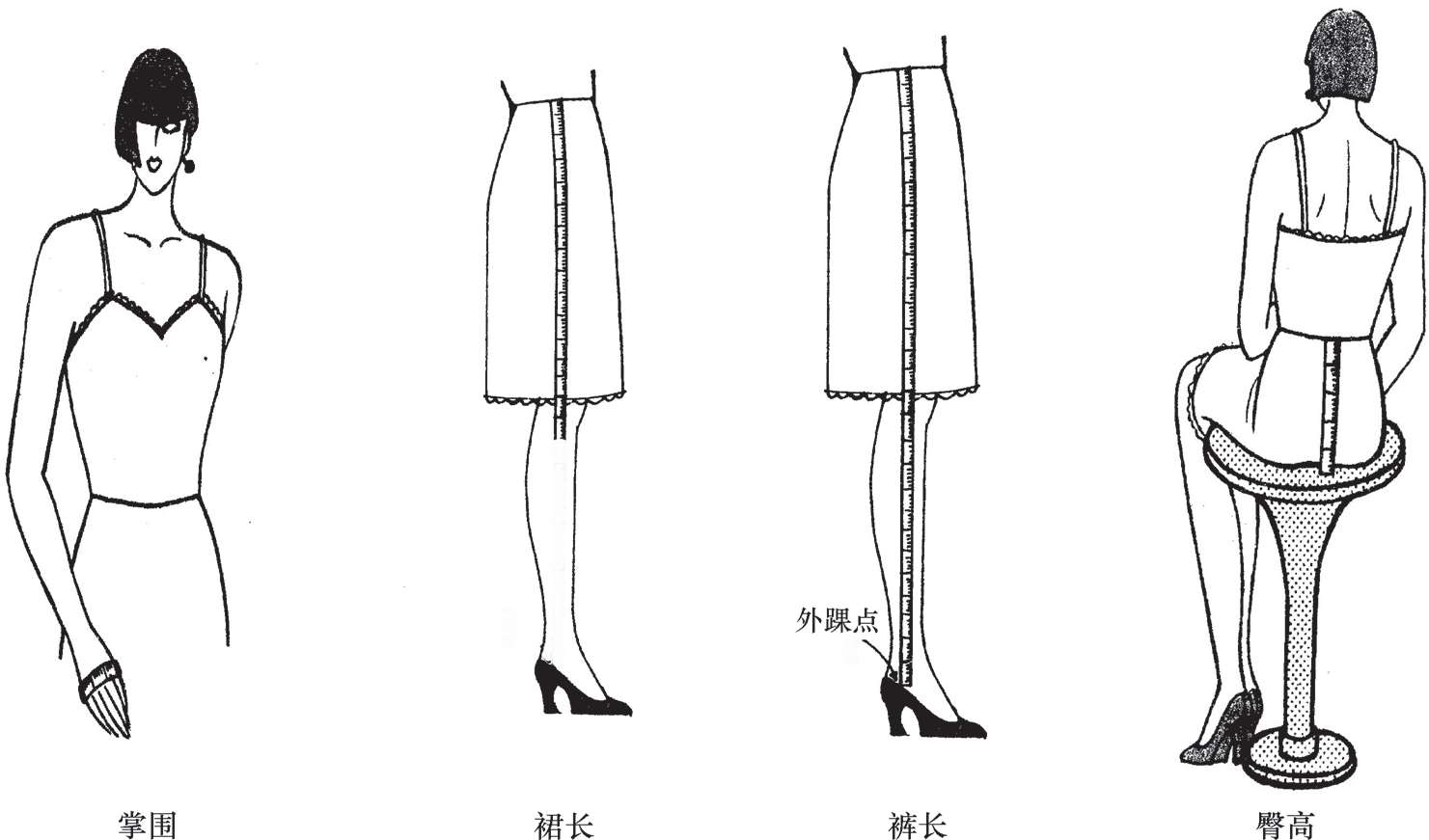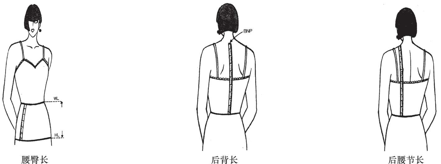 (2)长度测量:是指两个被测点之间的距离,如衣长、腰节长、裙长等。测量时注意被测点定位要准确,并考虑款式特点等。