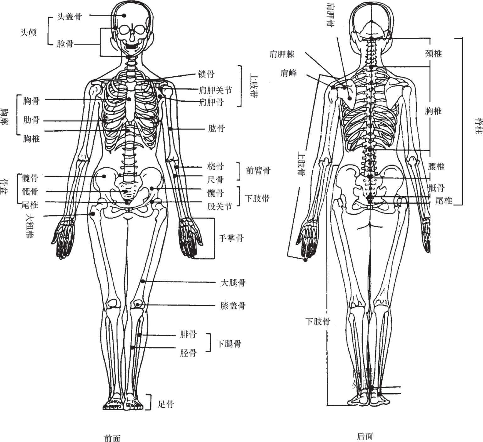 服装要适体就要了解人体的生理构成,研究正常人体形态结构,研究人体运动器官的形态结构,把握运动对人体形态结构的影响及影响服装功能结构的相关因素,这就需要关注人体解剖学方面的知识。下面从对服装有较大影响的人体骨骼、肌肉与脂肪入手进行人体生理构造的观察分析(图2-3~图2-5)。