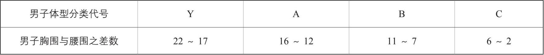 另外,国家标准规定,在进行服装的结构设计、生产和销售时,必须标明号型和体型。如男装中间标准体上装170/88A、下装170/74A,是配套上、下装服装规格的代号或标志。“170”为号,表示身高为170cm;“88”“74”分别表示净体胸围为88cm,净体腰围为74cm;“A”为体型分类代号,表示胸围和腰围的落差值在16~12cm范围内。对于套装系列服装,上装和下装必须分别有号型和体型分类标志。