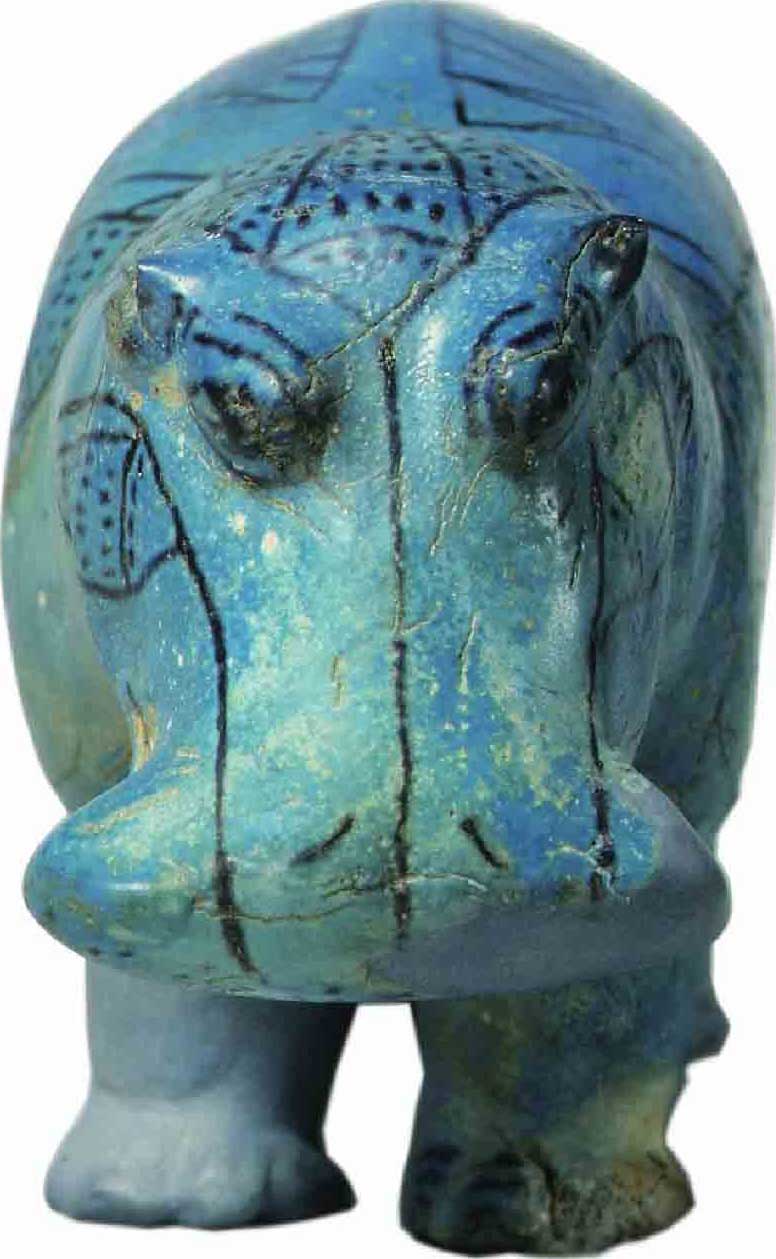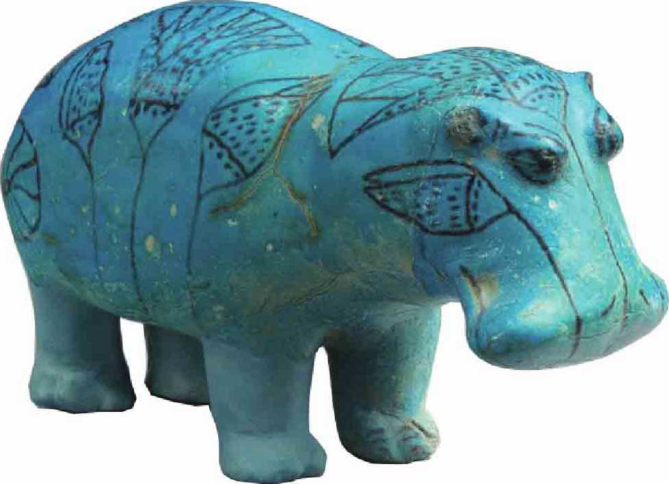 这件保存完好的河马小雕像(俗称“威廉”)表现出古埃及艺术家对自然世界的观察。蓝色的釉料下,河马的身体上描绘着水生植物的轮廓,象征着它生活在沼泽地带。它看似温和的外表非常具有欺骗性,对于古埃及人而言,河马是世界上最危险的动物之一,这种庞大的生物会给小型渔船带来极大的威胁。因此,河马象征着一种自然的力量。这件小雕像是森比(Senbi)的随葬品之一,与之一起出土的还有一具石棺、一个盛放木乃伊内脏的卡诺皮克罐(Canopic jar)以及许多船只模型。可爱的“威廉”因符合当代人的审美要求而知名度渐高,几乎成了大都会艺术博物馆的非官方吉祥物。