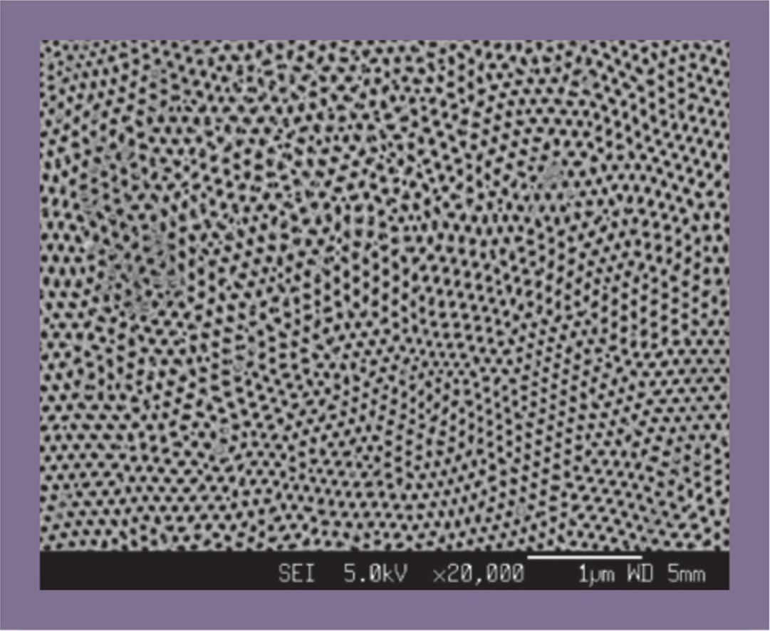 通过自组装、离子溅射、原子沉积等方法,制备超薄膜以及具有规整孔结构的膜。图2.38是电子显微镜拍出的具有规整孔结构的膜照片,其放大倍数为20000倍。