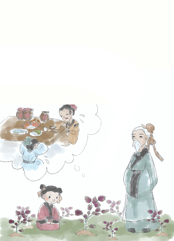 传说在重阳节时,华佗带着徒弟到镇上的酒铺饮酒,见几个少年比赛吃螃蟹。螃蟹性寒,吃多了会生病。华佗便上前劝说,但没有人听进他的话!过了一个时辰,少年们突然都喊肚子疼,有的疼得直在地上打滚。华佗见状,忙让徒弟到酒铺外的洼地里采些紫苏叶回来,让酒铺老板煮汤。少年们喝了紫苏汤后不久,肚子就不疼了。华佗告诉徒弟,鱼和螃蟹都是凉性的,而紫苏是温性的,所以,紫苏可以解鱼蟹毒。