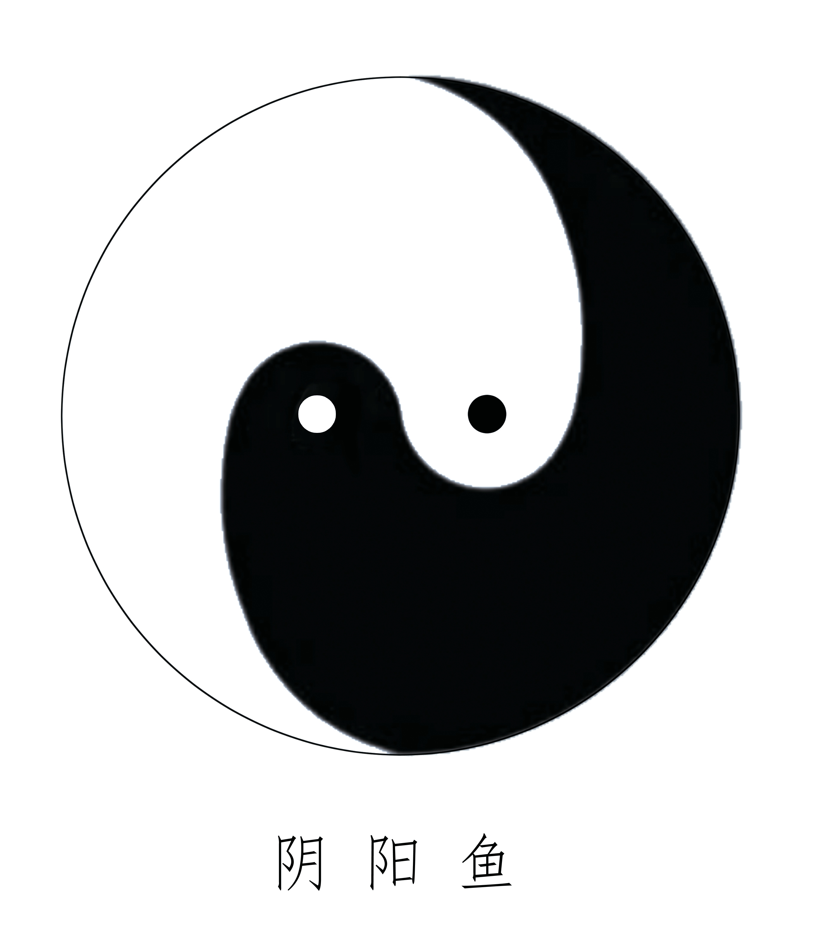 阴阳鱼也称“太极图”,它是反映我国传统哲学中辩证思想的一种象征性符号。白鱼代表阳,黑鱼代表阴,黑白两个鱼形图案拼成一个完整的圆形,表示阴阳是一个整体,同时也喻示阴阳相互转化又相互对立的基本道理。由鱼尾至鱼头,是阴或阳由弱小到壮大的一个过程,鱼眼(黑鱼中的白点或白鱼中的黑点)代表着阴中有阳、阳中有阴,阴阳相互依存的关系,呈旋转对称的(鱼头衔鱼尾)图形表示阴阳之间是可以相互转化的,即阳盛极而阴生,阴盛极而阳生。同时,黑白分明又表示阴阳之间是相互克制的。