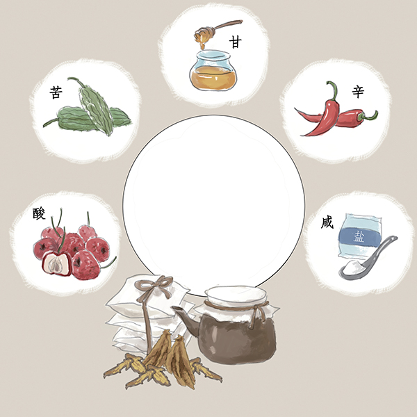 五味,是指药物有酸、苦、甘、辛、咸五种不同的味道,同时也是药物作用的高度概括。例如:辛味药具有发散、行气行血的作用;甘味药具有补益、调和药性和缓急止痛的作用;酸味药具有收敛、固涩的作用;苦味药具有清泄火热、通泻大便、燥湿的作用;咸味药具有泻下通便、软坚散结的作用。