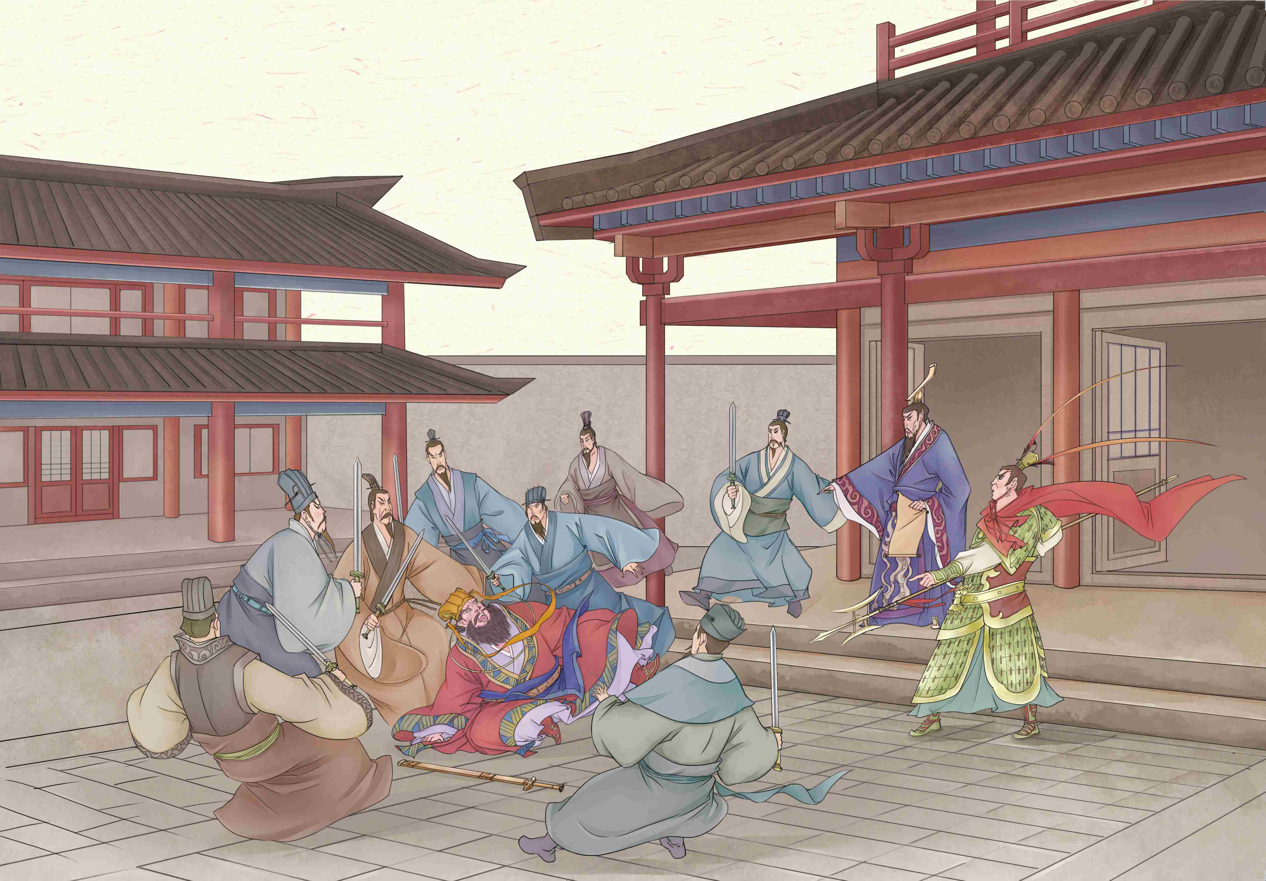 吕布一心都在貂蝉身上,整日叹息不已。王允看时机已到,便对吕布说道:“太师淫我之女,夺将军之妻,你我皆被天下耻笑。”吕布怒道:“若不杀此老贼,不能雪耻!”王允见吕布心意已定,便与他定下诛灭董卓之计。次日,王允联合百官,假意推举董卓称帝,诱骗董卓入宫。董卓未加防备,果然中了埋伏,危急关头,董卓大喊:“吾儿奉先何在?”吕布杀出,一戟直透咽喉,董卓当场气绝。王允振奋不已,想要重整朝纲,将董卓的党羽斩尽杀绝。董卓的部下李傕(读jué)、郭汜(读sì)、张济、樊稠逃居陕西,谋士贾诩说:“你们不如聚集大军杀回长安,胜则万事大吉,不胜再走不迟。”四人恍然大悟,聚众十余万杀回长安。吕布难以抵挡,只好离开长安,投奔袁术去了。王允无力回天,被李、郭二人杀死,献帝又落入他们手中。