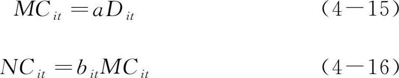 式中, MC it 为 i 省市第 t 年的能源消费CO 2 排放估计值, b it 为 i 省市第 t 年的碳排放修正系数。