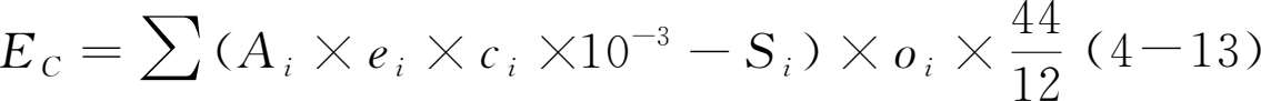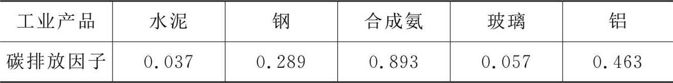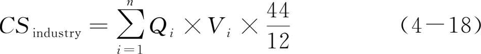 式中, CS industry 为工业生产过程的碳排放量, Q i 为工业产品 i 的产量, V i 为工业产品 i 的碳排放因子。各工业产品的碳排放系数见表4-4 [4, 195] 。