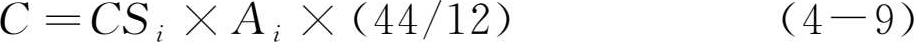 式中, C 为碳吸收量, CS i 为 i 的碳汇能力, A i 为 i 的面积。