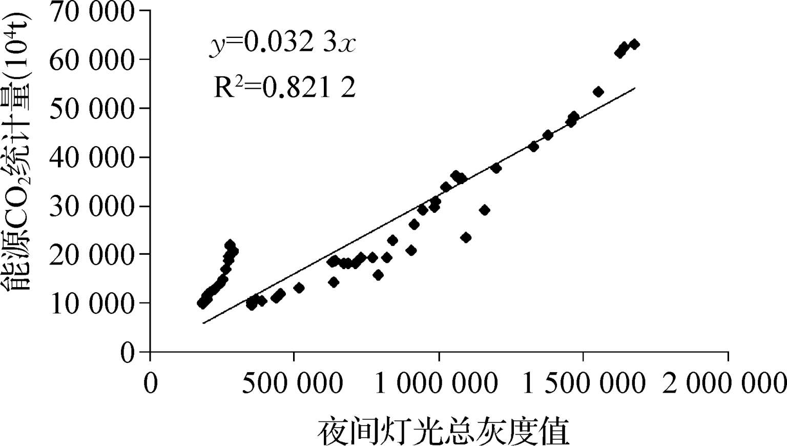 图4-1 能源消费CO 2 统计量与夜间灯光总灰度值拟合关系