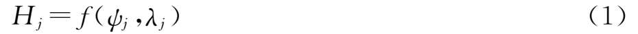 (1)GPS的本质是利用空间三角测量的原理通过空中卫星和地面接收机获取经纬度坐标( ψ , λ )、高程( H )和时间( t )之间的关系,从而为测高、导航(定位)等服务。在一定的时间下,它们之间的关系可用式(1)表示: