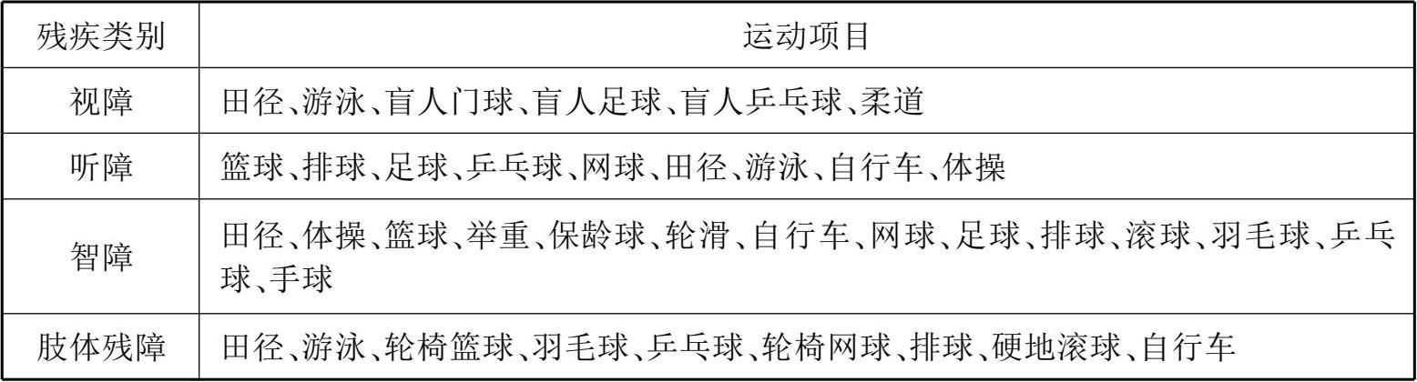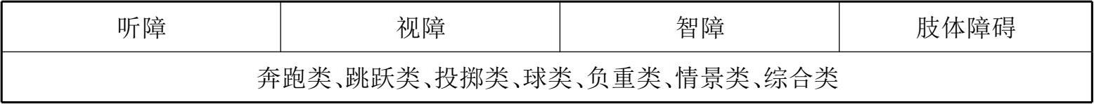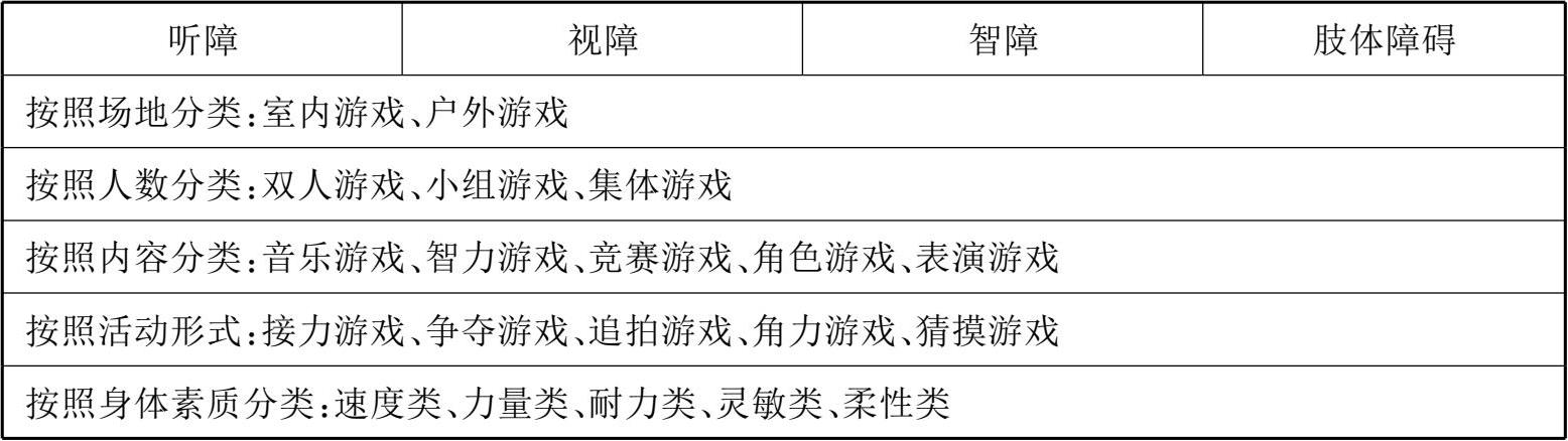③按照残疾类别从场地、人数、内容、活动、身体素质分类(见表1-3)。