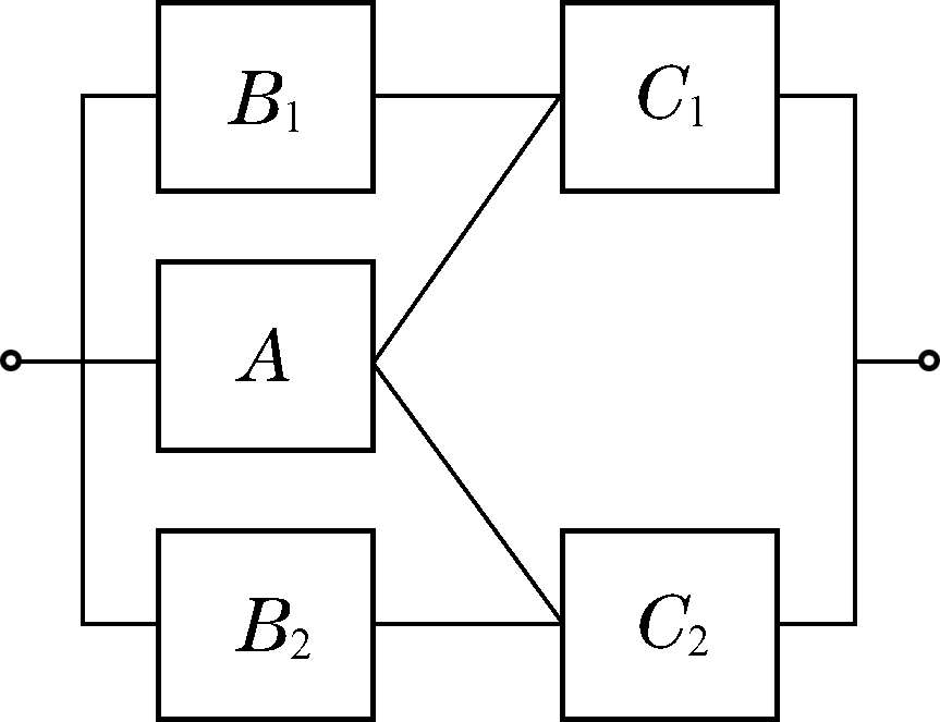 对于如图3-16所示的较为复杂的可靠性结构模型,可用贝叶斯法进行计算。贝叶斯法较为简单,可以用一般概率知识和简单的可靠性结构进行简化计算。