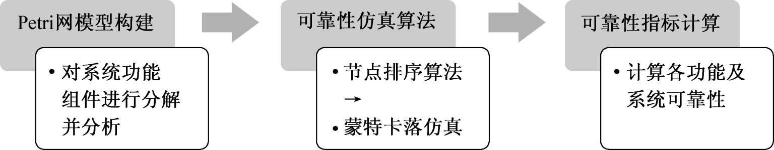 1) Petri网模型构建:需要对复杂系统的可靠性功能逻辑关系进行分析,建立系统随机有色Petri网模型;