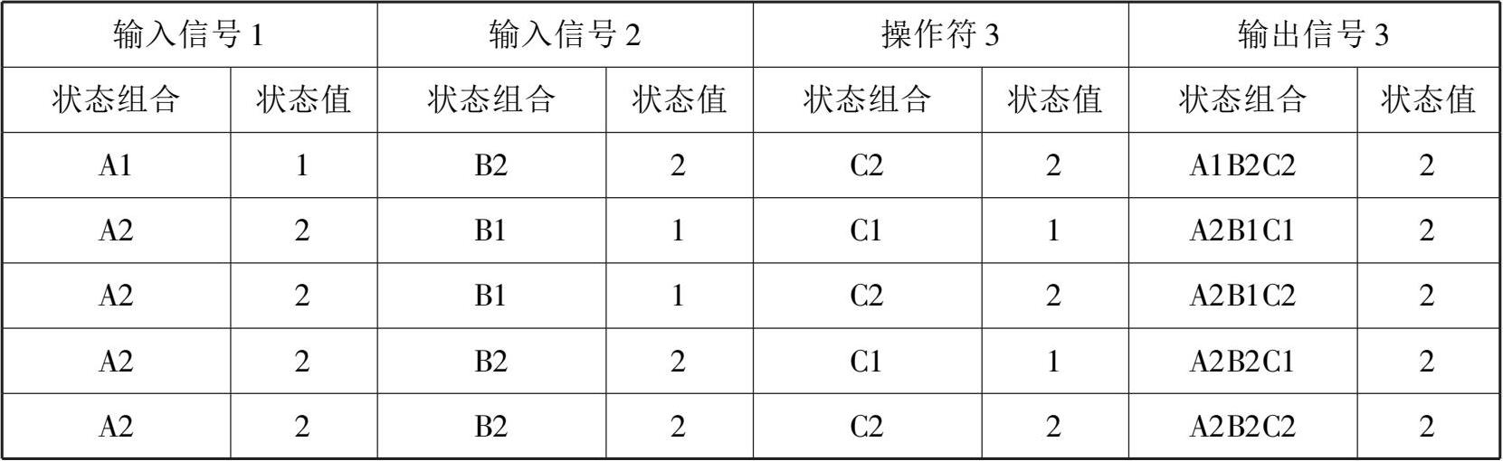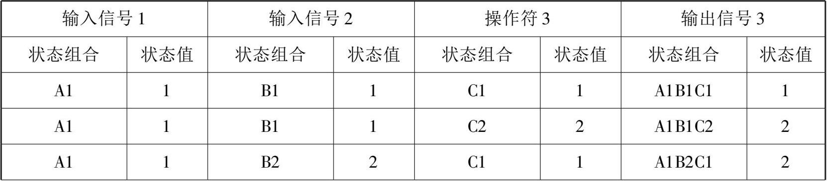 q)要求恢复已关断元件:可用于模拟这样一类部件,即该部件已经被激励,目的是使输入信号向输出方向的流动,如对已经被激励的常闭电磁阀解除激励,让气体流过。该类操作符输入和输出的状态逻辑是相反的,应用时可以同时加上第15类操作符模拟这种逻辑反向,使系统模型的所有成功状态都用相同的状态值表示。