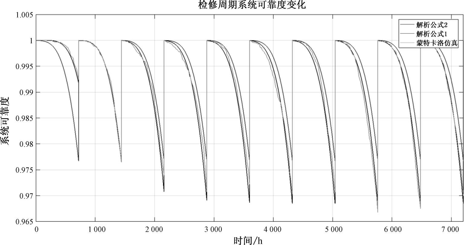 假定在多个检修周期之后,系统可靠度呈现周期性变化,有: