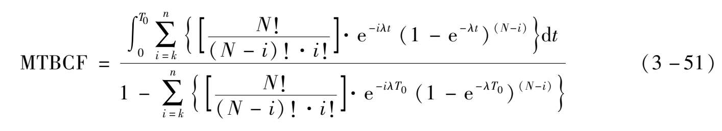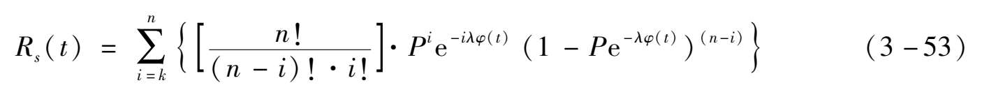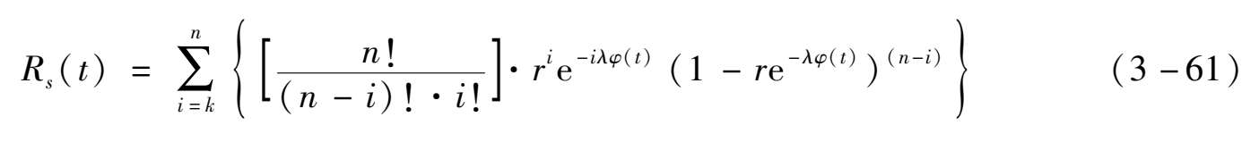 式中: n —单元总数; k —系统正常工作所需的无故障单元数;λ—单元失效率。
