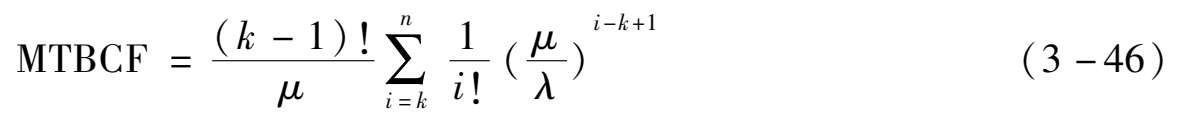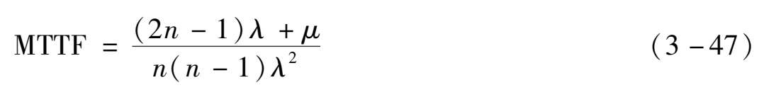 并联在线修理时, MTBCF=(3λ + μ )/2λ 2 。