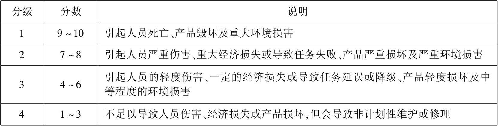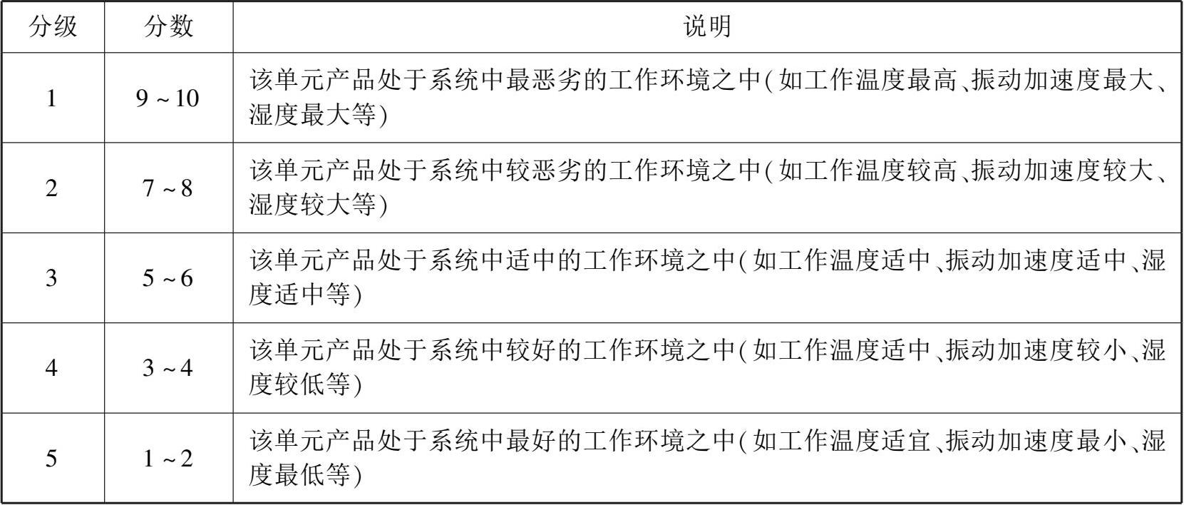 环境条件:根据单元所处的环境来评定。单元工作过程中会经受极其恶劣而严酷的环境条件的评10分,环境条件最好的评1分,具体准则如表4-7所示。
