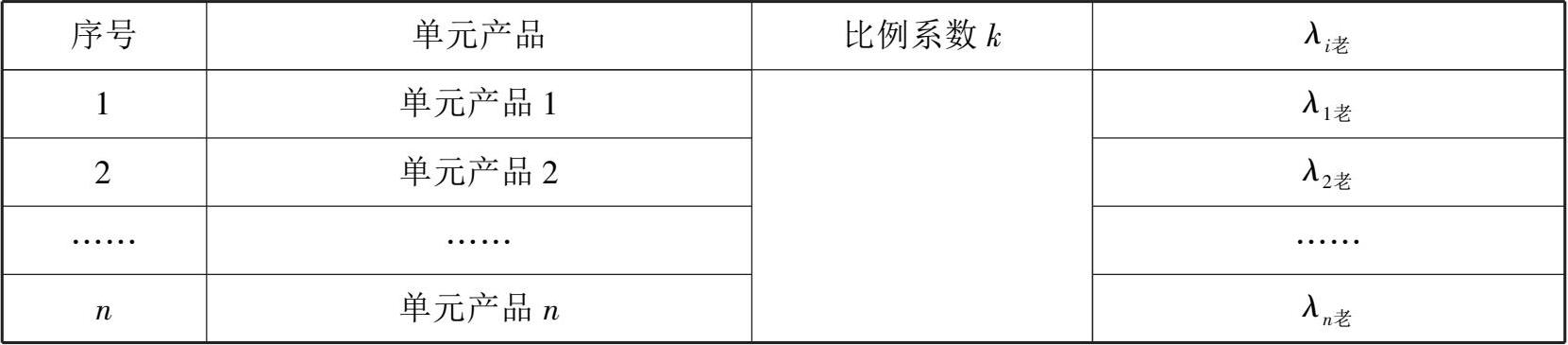 将已有老系统的使用统计数据,或可靠性预计获得的各单元产品的故障率,填入表4-14中。