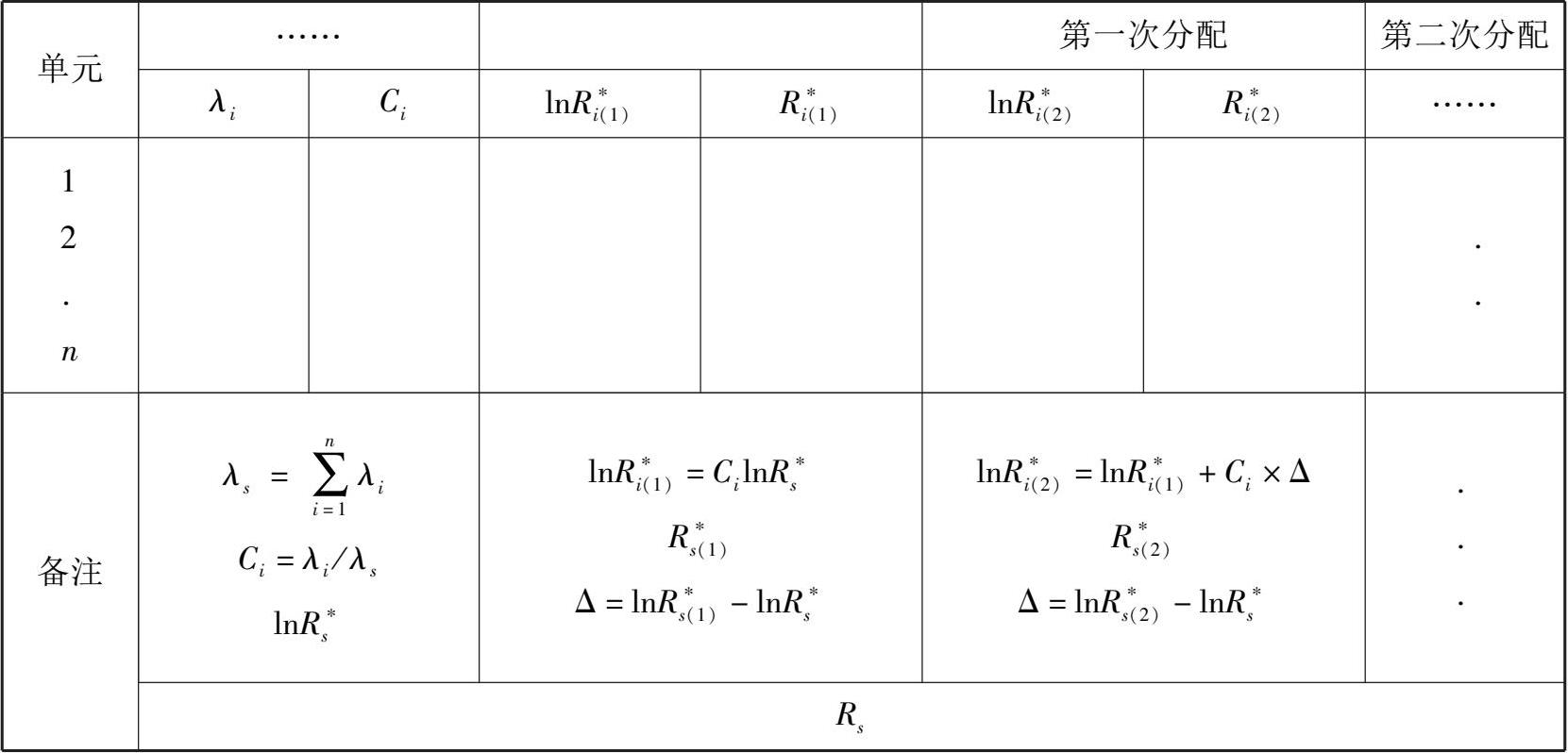 联立,可解出待定常数λ及各装置可靠度之分配值