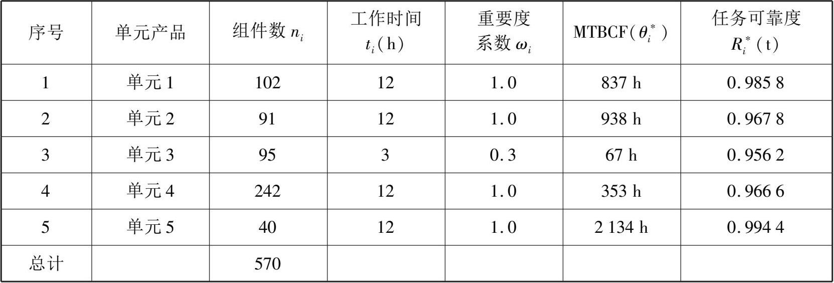 重要度系数ω i 是单元产品故障影响系统任务完成的程度,其数值可根据实际经验(或统计数据)来确定,也可通过可靠性模型、FMECA或FTA等方法得到。ω i =1,说明该单元产品的故障将直接导致系统任务失败,一般是串联模型;ω i <1,说明该单元产品故障,系统不一定不能完成任务,一般是有冗余设计,或是某些故障不足以影响系统完成任务。