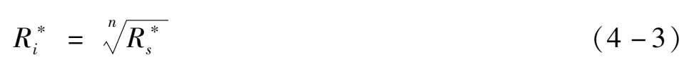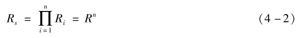 等分配法的原理是,对于简单的串联系统,认为其各组成单元的可靠性水平均相同。设系统有 n 个单元串联而成, R i = R , i =1,2,…, n ,则系统可靠度 R s 为: