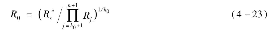 d)确定 k 0 和 R 0 ,即确定哪些单元的可靠度需要提高以及提高到什么程度,令: