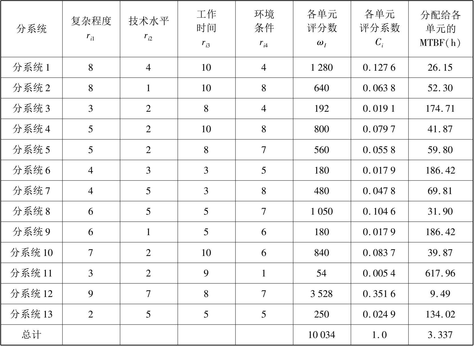 用评分法分给13个分系统,其分配结果如表4-13所示。