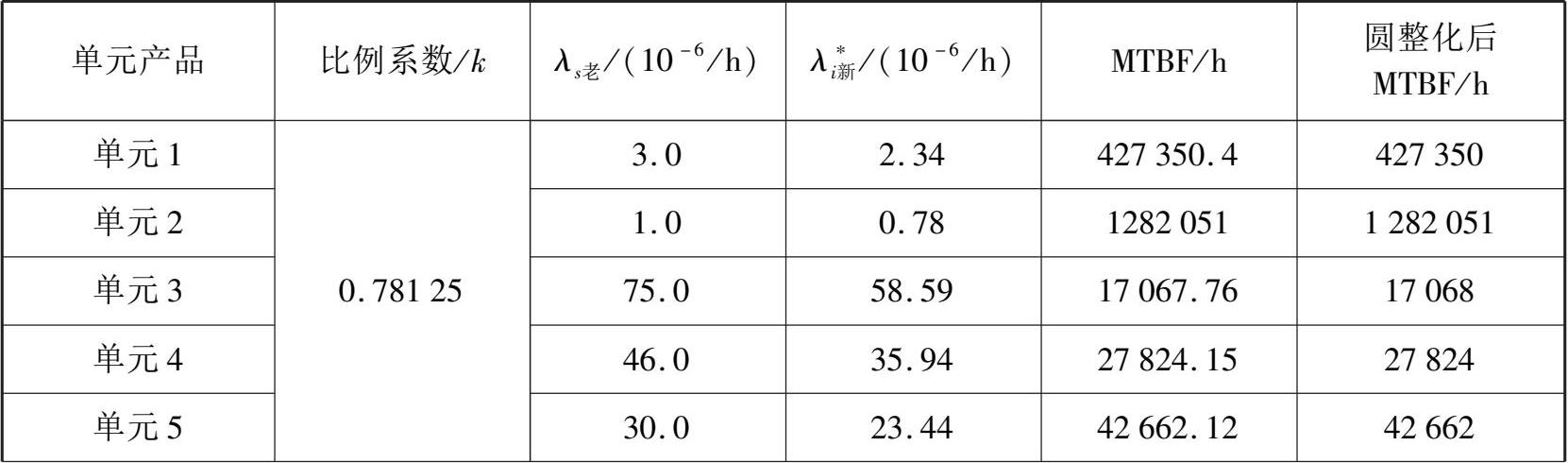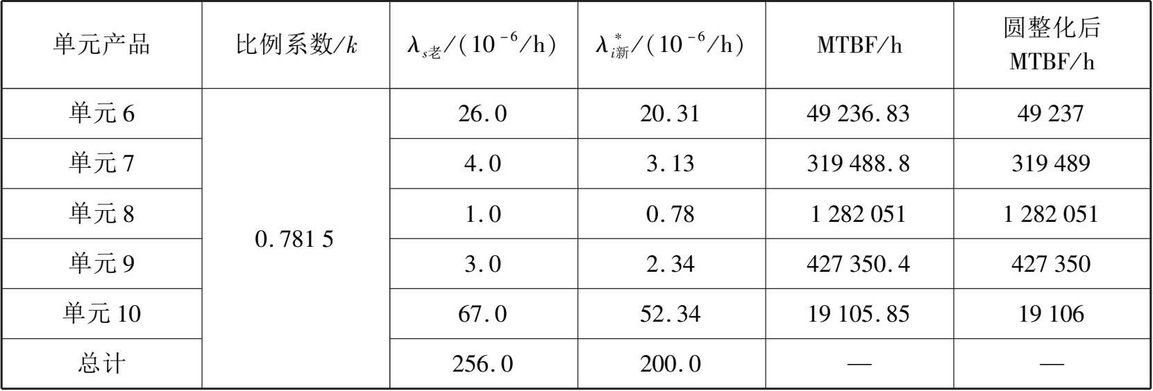 /h,各单元产品故障率见表4-15中的第3列所示。设计的新系统,其组成部分与老系统基本一致,新系统的故障率要求为