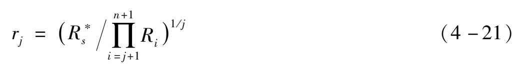 假定系统由k个装置所组成,系统可靠度指标值为 R S ,待求的各装置的可靠度分配值为 R i ( i =1,2,…, k )。