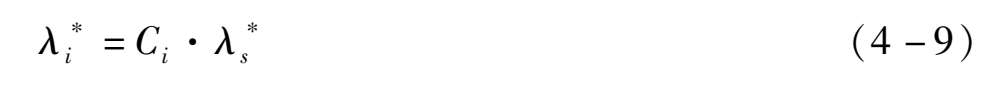c)计算新系统中各子系统故障率,见表4-15中第4列;