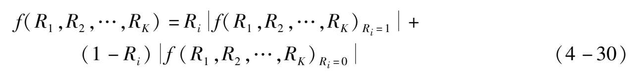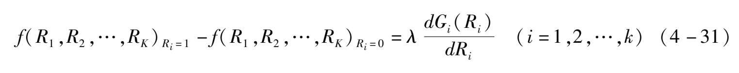 一般当装置的可靠度 R i 值越大时,系统的可靠度 R S 也会越大,因此,式(4-26)的函数是一个对 R i 的单调递增函数。