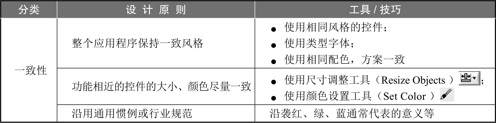 表2-3 前面板设计的一致性原则